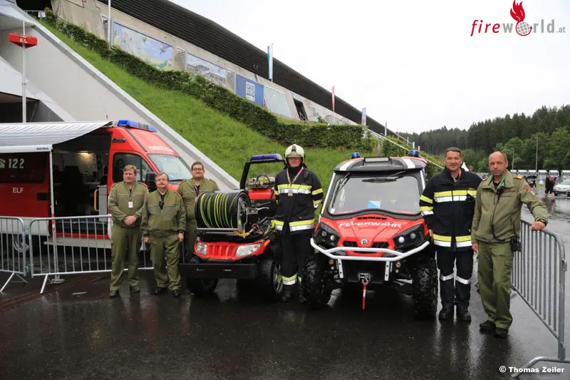In jeweils 12-Stunden-Schichten sorgen 78 Feuerwehrmänner mit 12 Fahrzeugen und drei Löschquads aus 9 Feuerwehren (Spielberg, Apfelberg, Flatschach, Sachendorf, Seckau, St. Margarethen, St. Lorenzen, Bischoffeld, Kobenz) für die Sicherheit am Hubschrauberlandeplatz, Konzertgelände, Camping- und Parkplätzen sowie im Innenbereich des Red Bull Rings und auf der Rennstrecke. Um bei großen Menschenansammlungen schneller zum Einsatzort gelangen zu können, wurden Löschquads als Vorausfahrzeug vor ihren tonnenschweren „Brüdern“ zum Einsatzort geschickt, um hier schnellstmöglich Hilfe leisten zu können.