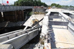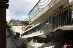 Zwei Arbeiter die mit Arbeiten auf dem Brückenteil beschäftigt waren, wurden mit in die Tiefer gerissen. Ein 30 Tonnen schwerer Bagger stand ebenfalls auf dem Brückenteil.