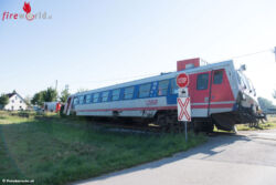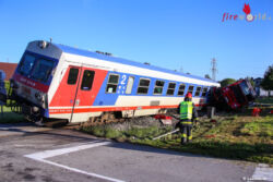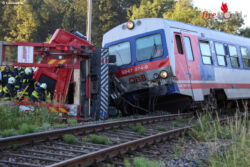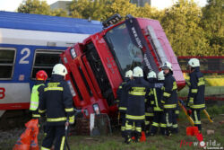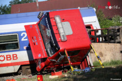 SATTLEDT (OÖ): Zu einem schweren Unfall kam es Dienstag, 5. Juli 2016, gegen 6 Uhr früh in Sattledt. Ein Lkw wurde von einem Zug erfasst.