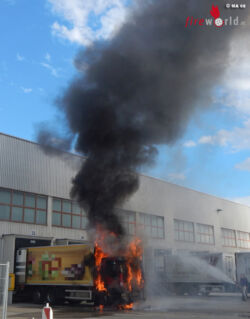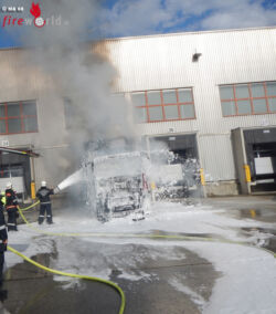 WIEN, 23. BEZIRK: Am frühen Abend des 4. Juli 2016 geriet aus noch unbekannter Ursache ein Kühl-Lkw auf einem Firmengelände in Vollbrand. Der Lkw befand sich zu diesem Zeitpunkt direkt an der Laderampe und es bestand die unmittelbare Gefahr der Brandausbreitung auf die Lagerhalle.