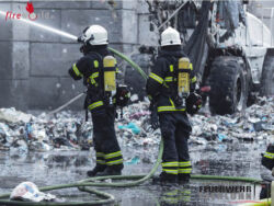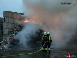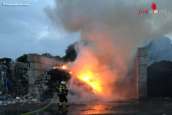 Der vorgetragene Löschangriff mit einem C- Rohr und einem Wasserwerfer zeigte schnell Wirkung. Nachdem das offene Feuer abgelöscht war, wurden die Abfälle mit einem betriebseigenen Radlader auseinander gezogen und mit Schwerschaum eneut abgelöscht. Der Einsatz war nach rund 1,5 Stunden beendet.
