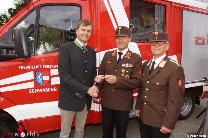 „Nach 6 jähriger Vorbereitung und teils schwierigen Verhandlungen steht nun eines der modernsten Feuerwehrfahrzeuge seiner Bauart vor Ihnen, welches uns bei den Einsatztätigkeiten unterstützen wird. Wir sind stolz, dass wir die erste Feuerwehr von Oberösterreich sind, welche ein solches Einsatzfahrzeug erhält. Dieses Feuerwehrauto ist ein Symbol für Gemeinsamkeit und steht dafür, wie man mit ein bisschen Mut und Engagement große Herausforderungen meistern kann.“ -so der Kommandant der Feuerwehr Schwaming HBI Karl Kralik. Das neue Einsatzfahrzeug hat einen Anschaffungswert von 156.616,00€ ist ein Mercedes Sprinter und wurde durch die Firma Rosenbauer aufgebaut.