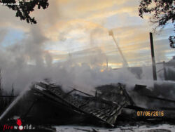Der eingesetzte Abrollbehälter Löschwasserförderung mit den bis zu 2000 m verlegbaren F-Schläuchen (ca. 160 mm Innendurchmesser) und der hydraulisch angetriebenen Schwimmpumpeneinheit, förderte bis zu 8000 l Löschwasser in der Minute. Das auf den Löschfahrzeugen verbaute Druckluftschaum Löschsystem erzielte bei den Löscharbeiten einen höchst effektiven beeindruckenden Löscherfolg.