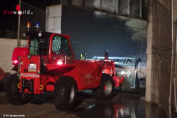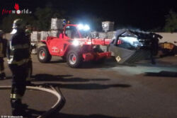 Nö: Feuerwehr-Teleskoplader leistet bei Brand in Batterielager in Grafenwörth gute Dienste