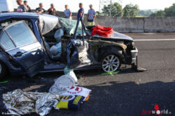 Kurz nachdem der Verkehr wieder an der Unfallstelle vorbeifahren konnte, ereignete sich ein weiterer Unfall. Ein PKW kam dabei am Dach zum Liegen. Insgesamt wurden sechs Personen verletzt. Ein Kind erlitt mittelschwere Verletzungen, es wurde mit dem Notarzthubschrauber Christophorus Europa 3 ins Krankenhaus geflogen. Mehrere Rettungsfahrzeuge standen im Einsatz.