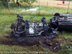 Durch die Wucht des Aufpralles geriet der ungarische Pkw in Brand. Löschversuche durch Zivilpersonen blieben erfolglos. Für den im Fahrzeug eingeklemmten Insassen kam leider jede Hilfe zu spät. Die Lenkerin des zweiten Fahrzeuges wurde beim Eintreffen der Feuerwehr bereits vom Roten Kreuz versorgt.