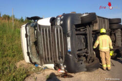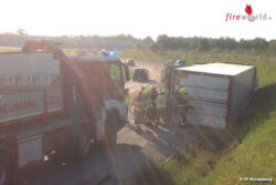 Nö: Sattelzug mit 17 t Rinderhälften umgestürzt → Arbeitsreicher Einsatz in Korneuburg