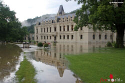 Auch der Schloss Teich in Hernstein konnte die Wassermenge nicht verkraften und so wurde in kürzester Zeit ein Großteil der Parkanlage überflutet. Das Wasser erreichte in Folge sogar das Alte Schloss und das angrenzende Seminarhotel. Beim Seminarhotel drangen die Wassermassen sintflutartig in die tiefergelegte Garage und in einige Räumlichkeiten ein. Hier waren die Feuerwehreinsatzkräfte zu Beginn einfach chancenlos und konnte vorerst nur Sicherungsarbeiten durchführen. Nachdem sich in den frühen Abendstunden die Lage etwas beruhigte und die Pegelstände leicht zurückgingen, wurde die in St. Veit a.d. Triesting stationierte Schmutzwasserpumpe des NÖ-Katastrophenhilfsdienstes angefordert. Nun konnte das stehende Wasser aus dem Schlosspark kontrolliert zum Abfluss gebracht werden. Ein erneuter Platzregen erschwerte den Einsatzkräften die Arbeit, erreichte aber in seiner Intensität nicht mehr das Ausmaß der Vorstunden.