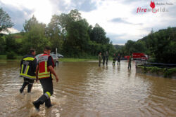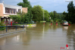 In den anderen Ortschaften galt es vor allem Keller auszupumpen oder Sicherungsarbeiten bei überfluteten Straßenzügen durchzuführen. Hier ein schon bekanntes Bild für die Feuerwehrleute nach einem heftigen Niederschlag. Die Kanalisation kann einfach die plötzlich auftretenden Wassermaßen nicht aufnehmen und sorgt für Überflutungen. Immer wieder müssen auch Verklausungen bei Bäche bzw. Gewässer gelöst werden.