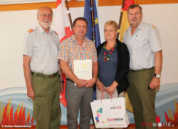 Landesfeuerwehrkommandant LBD Ing. Kögl und sein Stellvertreter LBDS Dipl. Päd. Hans Hatzl dankten den Preisträgern für die Teilnahme am diesjährigen Florianipreisrätsel, gratulierten zum Gewinn und wünschten ihnen einen schönen und erholsamen Aufenthalt in den burgenländischen Thermen und einen vergnüglichen Abend bei den Festspielen.