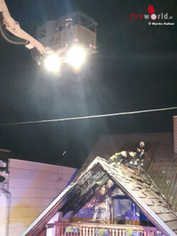 Die Dachhaut wurde vom Dachboden aus freigelegt, um Glutnester ausfindig zu machen und löschen zu können. Im Schadensbereich wurden die Dachziegel entfernt und mittels einer Wärmebildkamera der Hitzeverlauf kontrolliert. Um 01:45 Uhr konnte „Brand aus“ gemeldet werden. Die örtliche Feuerwehr verblieb zur Brandwache anwesend.