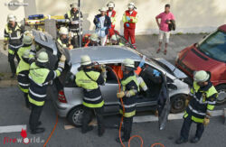 Aufgrund des Verletzungsmusters der 43-jährigen Fahrerin entschied der Notarzt, dass es medizinisch notwendig ist, eine patientenorientierte Rettung durchzuführen. Zu diesem Zweck schnitt die Feuerwehr mit hydraulischem Rettungsgerät das Dach der A-Klasse ab.
