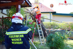 Zum bisher letzten Sturmschaden wurde die Feuerwehr Wiener Neudorf am Freitagmorgen in die Mitterfeldgasse alarmiert. Eine wuchtige Trauerweide wurde durch den Sturm abgebrochen und landete auf dem Dach eines Einfamilienhauses. Gesichert mit einem Greifzug und mehreren Deckenstehern wurde der Baum mit einer Motorkettensäge entastet und abgetragen.