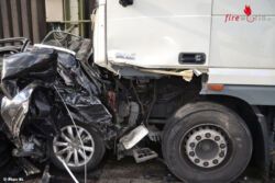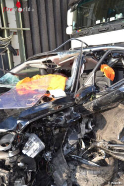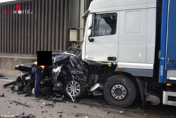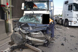 Schweiz: Lkw kracht ungebremst auf Pkw auf → eine Person klemmt in Auto