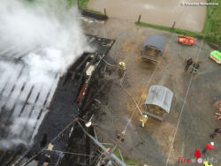 Am Brandobjekt konnte sofort festgestellt werden, dass sich keine Personen und Tiere mehr im Stallgebäude befanden. Die Einsatzkräfte konzentrierten sich auf einen gezielten Außenangriff mit mehreren Strahlrohren. Die Wasserversorgung wurde über einen in der unmittelbaren Nähe befindlichen Teich durch Tragkraftspritzen sichergestellt. Dank des raschen Eingreifens wurde das nebenstehende Wohnhaus gerettet.