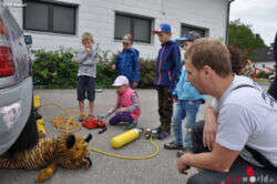 - Bei Station 5 musste ein eingeklemmter Stofftiger befreit werden. Dazu kamen die Hebekissen zum Einsatz, mit deren Hilfe wurde das Fahrzeug angehoben und der Tiger befreit.