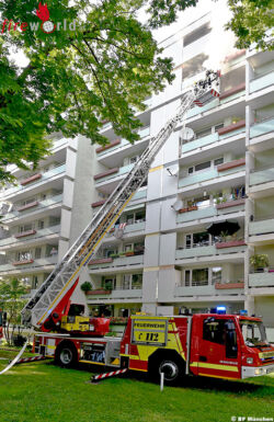 MÜNCHEN (D): Am frühen Abend des 16. Juli 2016 wurde die Feuerwehr München zu einem ausgedehnten Zimmerbrand in Neuperlach gerufen. Bei Ankunft der Einsatzkräfte waren Rauch und Flammen aus einem Fenster im sechsten Obergeschosses eines Mehrfamilienhauses zu sehen.