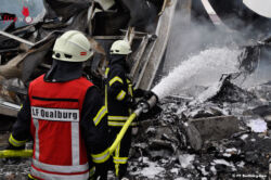 Um 16:00 Uhr konnten die letzten Einsatzkräfte die Einsatzstelle verlassen. Vorher mussten immer wieder aufflammende Brandnester abgelöscht werden.