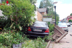 Bei diesem Versuch durchbrach der Pkw einen Zaun und kam im Garten eines Wohnhauses zum Stillstand. Beim Anprall riss er mehrere Betonsäulen nieder, einer der Holzpfosten des Zaunes durchstach die Windschutzscheibe und verfehlte den Lenker nur um Haaresbreite. Dieser konnte in der Folge das Fahrzeug aus eigener Kraft und unverletzt verlassen. Er begab sich dennoch zur Kontrolle ins Krankenhaus.