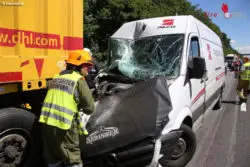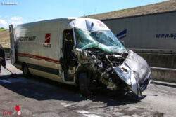 In Fahrtrichtung Passau kam es im Baustellenbereich zu einem Auffahrunfall zwischen einem Kleintransporter und einem Lkw. Der Lenker des Kleintransporters wurde bei dem Crash im Fahrzeug eingeklemmt und musste von der Feuerwehr mit hydraulischem Rettungsgerät aus dem Fahrzeug befreit werden.