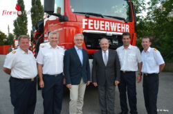 Bürgermeister Helmut Koch, Vizebürgermeister Alfred Kliegl sowie Stadt- und Gemeinderäte informierten sich ebenfalls über das neue Fahrzeug und versuchten sich auch hinter dem Lenkrad. Auch die Kameraden der Nachbarfeuerwehren erkundigten sich über die Gerätschaften und führten einen angeregten Erfahrungsaustausch.