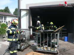 STEINERKIRCHEN (OÖ): Am Donnerstag, den 21.07.2016, wurden die drei Feuerwehren der Marktgemeinde Steinerkirchen an der Traun zu einem Brand eines landwirtschaftlichen Anwesens nach Hammersedt gerufen. Ein Palettenregal und mehrere Container in einer Werkstatt entzündeten sich aus bisher ungeklärter Ursache, wobei es zu einer starken Rauchentwicklung kam.