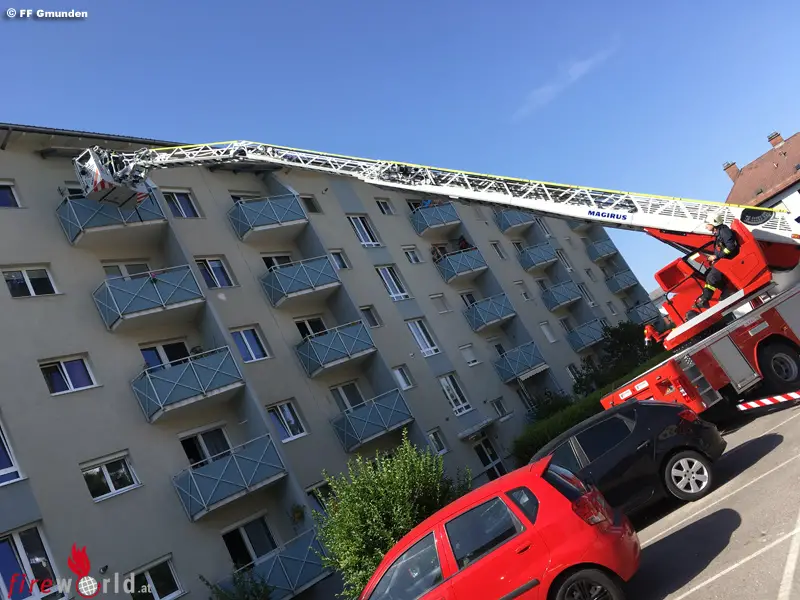 Oö: Personenrettung mit Drehleiter nach medizinischem Notfall in Gmunden