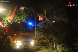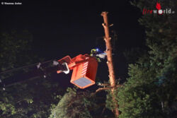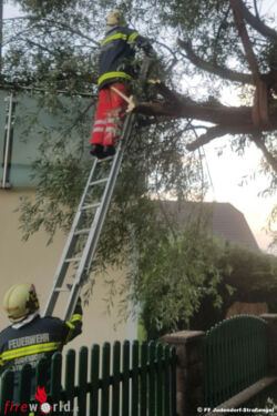 Am frühen Morgen wurden erneut die Feuerwehren Judendorf-Straßengel und Gratkorn alarmiert, weil bei dem nächtlichen Gewitter ein Baum Schaden nahm, der auf ein Wohnhaus zu stürzen drohte.