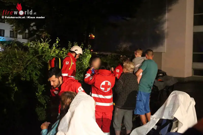 Alle Sanitäter und Ehrenamtlichen des Roten Kreuzes Steyr wurden alarmiert – in Summe fast 80 Einsatzkräfte, die mit allen verfügbaren Rettungsautos ausrückten. Der Grund: Es war noch unklar, wie viele Personen sich noch in dem brennenden Mehrparteienhauses im Stadtteil Resthof aufhielten. Als die Rettungskräfte eintrafen, war das Stiegenhaus des Gebäudes voller Rauch.