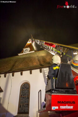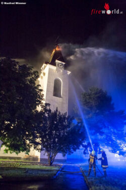 Gegen 01:15 Uhr erreichte die Bezirksalarmzentrale Krems der Notruf, dass aus dem Dachstuhl des Drosser Kirchturmes in Flammen sichtbar sind. Sofort wurden die Feuerwehren Dross, Lengenfeld, Stratzing, Priel, Senftenberg und Krems-Hauptwache laut Alarmstufe B3 zum Dachstuhlbrand alarmiert.