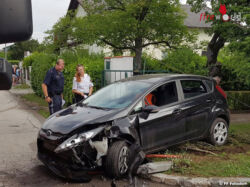 Eine Lenkerin eines Pkw hatt aus unbekannter Ursache die Kontrolle über ihr Fahrzeug verloren und kam von der Straße ab. Sie touchierte ein Verkehrsschild, mehrere Zaunsteher und zu guter Letzt auch noch einen Telefonmast. Der bereits anwesende Rettungsdienst hatte bereits mit der Betreuung der Lenkerin begonnen. Ihr Beifahrer konnte unverletzt das Auto verlassen. Die Fahrzeuglenkerin konnte nicht selbstständig das Fahrzeug verlassen da der umgeknickte Telefonmast die Fahrertür blockierte.