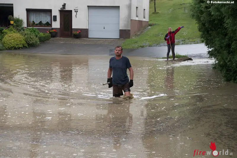 - Hauptsächlich überflutete Gebäude durch Starkregen und übergelaufene Bäche
