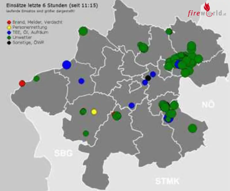 Mit Stand 17:15 Uhr wurden von der Landeswarnzentrale die oberösterreichischen Feuerwehren zu über 120 Schadensfällen alarmiert. Ebenfalls wurden den Feuerwehren vor Ort zahlreiche weitere Einsätze gemeldet, welche zusätzlich zu den durch die Landeswarnzentrale alarmierten Einsätzen abgearbeitet wurden.