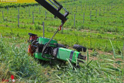 GUNTRAMSDORF (NÖ): Zu einer technischen Hilfeleistung – Traktor umgestürzt – wurde die Feuerwehr Guntramsdorf kurz nach 10 Uhr Vormittag des 26. Juli 2016 in die Weingärten am Eichkogel alarmiert.