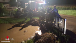 Der Werksbach konnte die Wassermassen nicht mehr aufnehmen und überflutete größtenteils die Ortschaft. Zahlreiche Keller und Straßenabschnitte mussten von den Wassermassen gesäubert werden. Die Feuerwehr St.Pölten – St.Georgen stand mit vier Pumpengeräten im Einsatz.