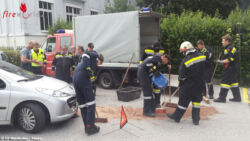 Der Lenker eines Peugeot wollte kurz nach 19 Uhr den Krankenhaus-Parkplatz Richtung Moritz Schadek Gasse verlassen. Doch nach wenigen Metern brach plötzlich das linke Vorderrad aus der Verankerung und Öl floss auf die Fahrbahn – eine Weiterfahrt war nicht mehr möglich. Der Lenker verständigte daraufhin den ÖAMTC und anschließend die Feuerwehr zur Entfernung des ausgetretenen Betiebsmittel.