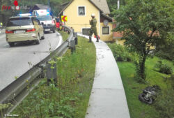 KLEINZELL (NÖ): Am Vormittag des 27. Juli 2016 wurde die Freiw. Feuerwehr Kleinzell zum Beseitigen einer Ölspur alarmiert. Wie sich vor Ort herausstellte war es eine Fahrzeugbergung nach einem Verkehrsunfall, ein Motorradlenker kollidierte frontal mit einem entgegenkommenden Pkw.