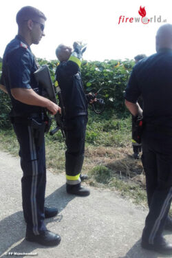 MÜNCHENDORF (NÖ): Zu einem kuriosen Einsatz wurde die Feuerwehr Münchendorf am Vormittag des 26. Juli 2016 alarmiert. Entgegen der Erstmeldung „Kuh im Wasser“ sollte es sich um zwei Stiere handeln, welche aus der örtlichen Justizanstalt ausgebüchst waren.