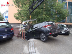 Oö: Falsche Ausfahrt → FF Bad Ischl hebt Pkw von den Kirchenplatzstiegen