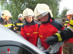 Als einer der ersten Programmpunkte wurde gemeinsam mit den Aktiven die Freitagsübung abgehalten. Einen Verkehrsunfall mit zwei eingeklemmten Personen hieß es abzuarbeiten. Die Jugendlichen wurden ins Übungsgeschehen eingebunden und bestmöglich auf dem technischen Gerät geschult. Als dann die sehr nasse Übung vorbei war, stärkten sich die Jugendlichen und Betreuer mit Pizza.