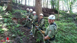 Der nächste Programmpunkt an diesem Tag war die Menschenrettungsübung. Ein Seilgeländer wurde aufgebaut um den gesicherten Ab- und Aufstieg im unwegsamen Gelände zu üben. Nach dieser anstrengenden Einheit wurde gemeinsam das Mittagessen gekocht. Lange konnten wir aber nicht rasten.
