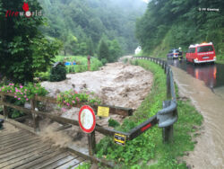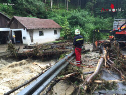 SCHEIBBS (NÖ): Um 16:25 Uhr wurde am Mittwoch, 27. Juli 2016, die Freiwillige Feuerwehr Gaming zum ersten Einsatz, Auspumparbeiten in der Pockau, alarmiert. Bei der Anfahrt zum Einsatzort wurde erst das ganze Ausmaß der Unwetter sichtbar.