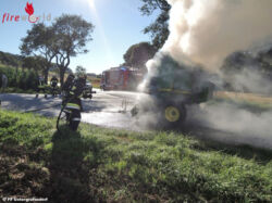 UNTERGRAFENDORF (NÖ): Am vorletzten Juli-Tag 2016 wurde die Freiw. Feuerwehr Untergrafendorf um 17:40 Uhr zum Brand einer Rundballenpresse auf die L5076 im Schildberger Kreuzungsbereich gerufen. Gemäß Alarmplan B2 wurden zusätzlich die Feuerwehren Böheimkirchen- Markt, Weisching und Maria Jeutendorf alarmiert.
