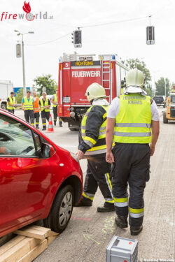 Die Besatzung eines Tanklöschfahrzeuges, welches sich gerade am Weg zu einem TUS-Alarm befand, bemerkte das Missgeschick und ließ über Funk von Florian Krems weitere Kräfte zu diesem Unfall entsenden.