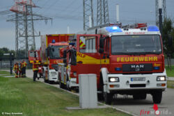 Um 13.36 Uhr wurde die Bruchsaler Feuerwehr mit dem Stichwort „Arbeitsstättenbrand“ in die Christian-Pähr-Straße gerufen. In der mit mehreren hundert Litern Öl gefüllten Härteanlage kam es durch einen technischen Defekt zu einer Überhitzung. Die Werks- und Bereichsleitung schlug aus sicherheitstechnischen Gründen vor, die Anlage mit eigenen Mitteln langsam abzukühlen. Die Feuerwehr bereitete an der Einsatzstelle sämtliches Material vor, sollten diese Maßnahmen nicht greifen. Zur Sicherheit wurde von der Berufsfeuerwehr Karlsruhe und der Feuerwehr Ettlingen je ein Fahrzeug mit Sonderlöschmitteln an die Einsatzstelle alarmiert. Frau Oberbürgermeisterin Cornelia Petzold-Schick machte sich vor Ort mit der Einsatzleitung ein Bild über die Lage.