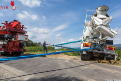 KREMS AN DER DONAU (NÖ): Am Vormittag des 2. August 2016 wurde die Freiwillige Feuerwehr Krems zu einer heiklen Bergung eines vollbeladenen Betonmischwagens auf die L7096 zwischen Krems-Hollenburg und Krustetten alarmiert. Bereits mehrmals wurde an diesem Tag eine enge Zufahrtstraße zu einer Baustelle in Hollenburg mit Schwerfahrzeugen befahren.