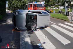 STEYR (OÖ): Zu Mittag des 2. August 2016 rückte die Feuerwehr Steyr (Löschzug 5 Münichholz und technischer Zug) zu einem Verkehrsunfall am Plenklberg/Münichholz aus. Der Wagen eines Mannes war nach einer Vollbremsung ins Schleudern gekommen und hat sich dabei überschlagen. Das Fahrzeug blieb auf der Beifahrerseite liegen.