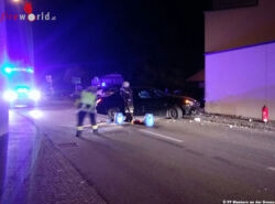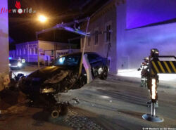 Wie sich beim Eintreffen an der Unfallstelle herausstellte, prallte ein Pkw gegen eine Hausmauer und verlor durch die enorme Wucht das linke vordere Rad. Die Unfallstelle wurde von der Besatzung des HLFA 3 gemeinsam mit der Polizei abgesichert und ein Brandschutz errichtet.