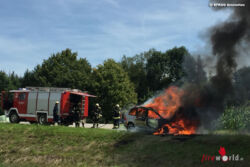 ÖHLING (NÖ): Am Donnerstag, den 4. August 2016, meldete gegen 13:30 Uhr ein vorbeikommender Feuerwehrmann der Feuerwehr Oed via Notruf 122 die Einsatzkräfte einen Fahrzeugbrand im Ortsgebiet von Öhling. Von der Bereichsalarmzentrale Amstetten wurden unverzüglich die Freiwilligen Feuerwehren Mauer-Öhling, Oed sowie die Betriebsfeuerwehr Landesklinikum Mostviertel Amstetten-Mauer zum einem B2-Fahrzeugbrand alarmiert.