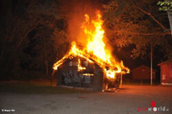 Schweiz: Waldhaus beim Pfadiheim in Luterbach in der Nacht niedergebrannt